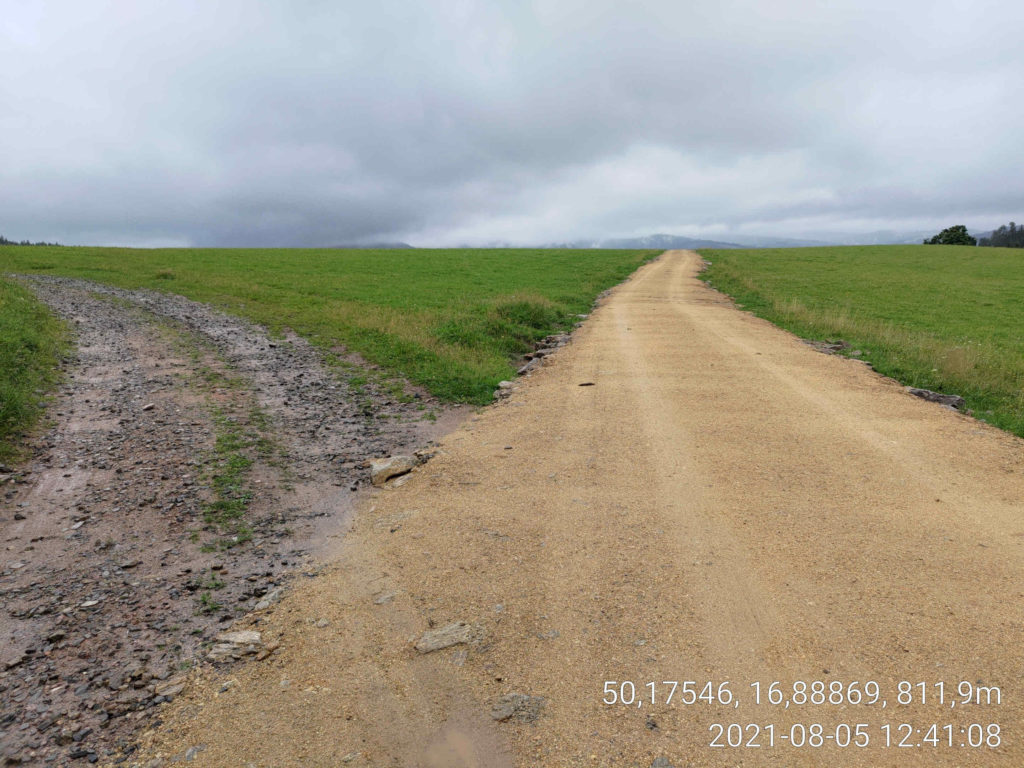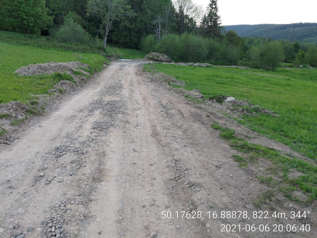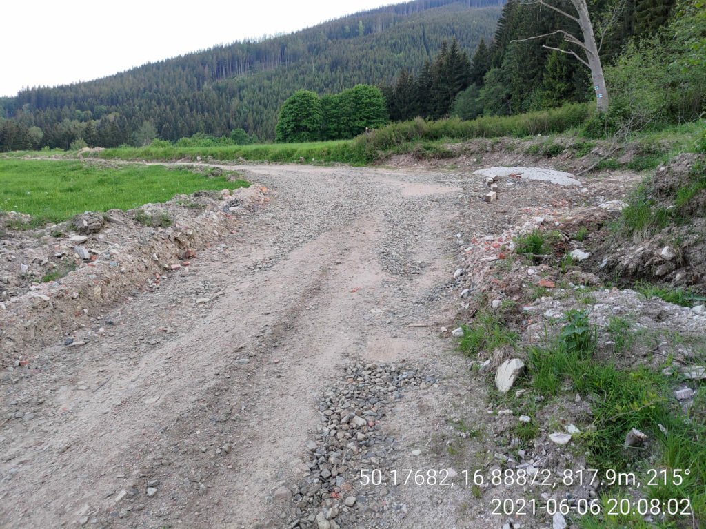 Tvorba nových cest po vyznačení nových parcel v katastru nemovitostí skrz trvalý travní porost po vysypání kamením a štěrkopískem.