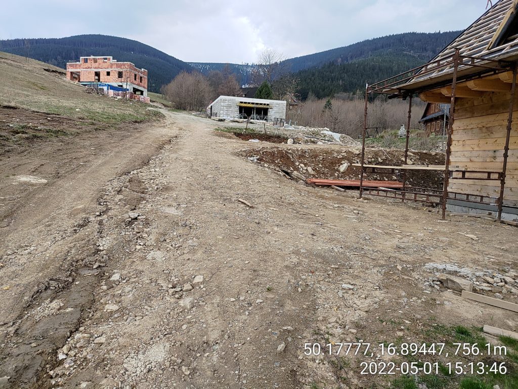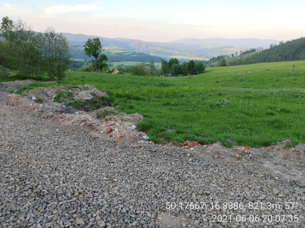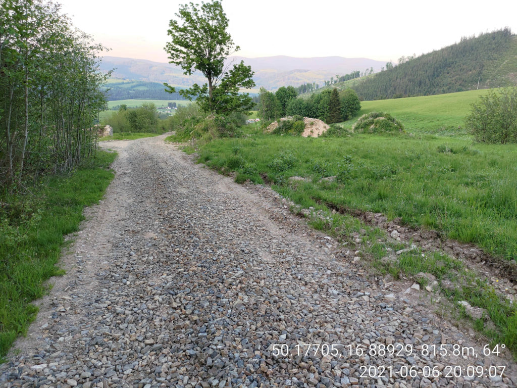 Horské louky ve Stříbrnicích, na kterých vzniklo množství drobných parcel určených na prodej, byly vyznačeny nové cesty a současně město začalo plánovat výstavbu vodovodu. Tím pádem zasíťují soukromé pozemky soukromého podnikatele, nejspíš z dotací. Vpravo mimo okraj snímku je zánovní silniční most, aby se zobrazované louky daly lépe rozvíjet.