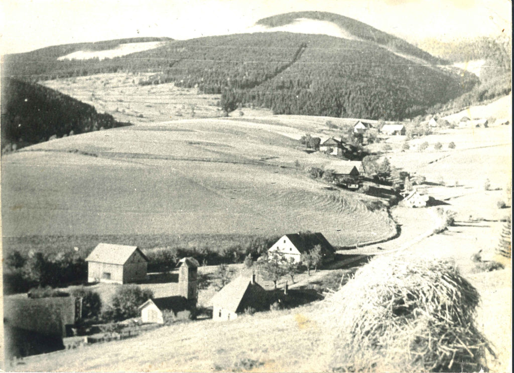 Za fotografii děkuji jednomu čtenáři: „Dobrý den, jsem nesmírně potěšen že někdo aspoň napsal to co váš spolek. Tato místa znám od dětství a bohužel vidím kam se to vyvíjí. V dobách kdy státní statek na loukách ještě pěstoval len jsem z toho ještě neměl rozum, pak ale po revoluci přišla doba kdy se o louky nikdo nestaral, kupodivu louky krásně kvetly a bylo zde velice živo. Vposlední době louky sečou již z jara a nic moc zde nekvete. Kdo nic nedělá nic nepokazí a taky asi neděláme vždycky všechno správně, ale člověk by se měl nechat poučit. Beru to jako velkou zkázu, že na těchto místech nekdo staví. Kdyby aspoň stavěli jen na místech kde už domy byly. Viz foto starého osídlení. Způsob jakým staví je ovšem trestuhodný, když nekdo vysype cca 2m3 betonu v zatáčce u lesa nebo loni někdo asi prorazil nádrž auta a vytekla mu po cestě nafta nebo olej no hrůza. O po lesích rozfoukaných igelitech a polystyrénech nemluvě a kolik toho zakopali kolem základů domů… Ještě jsem nekde slyšel, že pan „developer“ když se stal majitelem nejdříve vytvořil dotační projekt údajně se to jmenovalo uvedení do původního stavu a na základě tohoto projektu vykácel většinu vzrostlých stromů kolem potoka a prodal je na peletky. Nevím jestli je to pravda, ale u nás je možné asi vše. Výstavbu už asi nikdo nezastavi, ale aspoň by úřady neměly nečinně přihlížet.„.